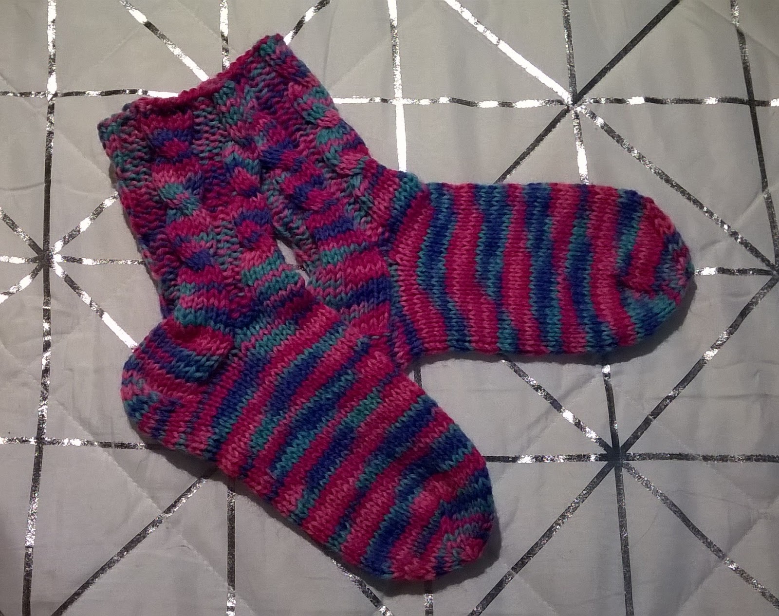 Tyttären jaloille palmikkosukat Seiska Veikan karkkivärilangasta 4.9.2016
